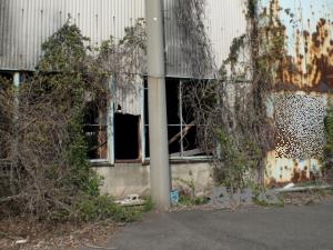 敷地内には大小2つの建物があります。 左側の小さい方の建物が事務所などに利用されていたと思われます。 右側の大きな建物が工場ですね。 近くで見ると思っていた以上に大きそうです。 それにしても植物が凄いですね・ 手入れなどされる事がないので伸びほうだいです・・ 先に進めるのだろうか? |
