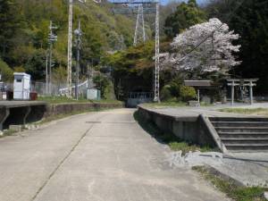 ホーム脇にある石碑などが奉られている白龍神社。 ( クリックすると拡大します )