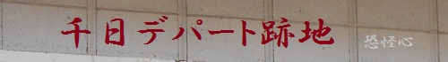 1972年 ( 昭和47年 ) 5月13日現在の中央区の千日前に在った 千日デパートで死者118名、重軽傷者78名を出す国内ビル火災史上最悪の大惨事が起こりました。 現在はその様な跡地に某大手カメラ店の建物が建っています。 この場所は昔・ 処刑場で処刑された人数と同じ数の方が火災で亡くなられたとか・ 店内でも不思議な・ あるいは怖い体験をされる方が後を絶たないようですし・ 建物の周りでも・ 不可解な体験を見聞きされたという方が後を絶たないそうです・・ 地元の方や当時の事をよく知る方などは決してこの辺りに近寄らないとも言います・・・ 戦争中や戦後の曰くめいた噂話やホステスなどによるタクシー怪談も多数あるようです・・・ 店内1階にトイレがない理由などなど・ 謎の多い建物・・ 管理人も下の画像を撮るのが精いっぱいでした・・・・・・・・・・・・・ |